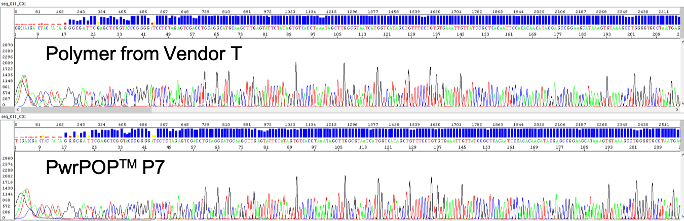 Polymer comparison shows that PwrPOP™ P7 polymer shows comparative separation performance with Polymer from Vendor T