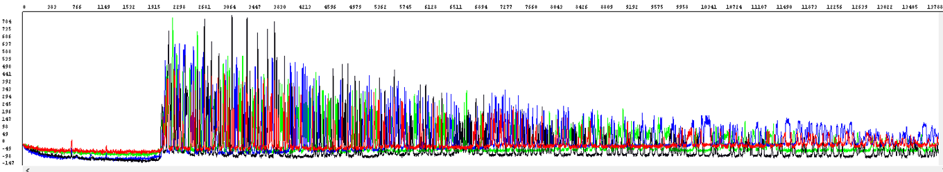 Compared to Vendor T product (bottom), SupreDye (top) chemistry shows much better performance for sequencing a difficult template with secondary structures by generating strong and long read signal.
